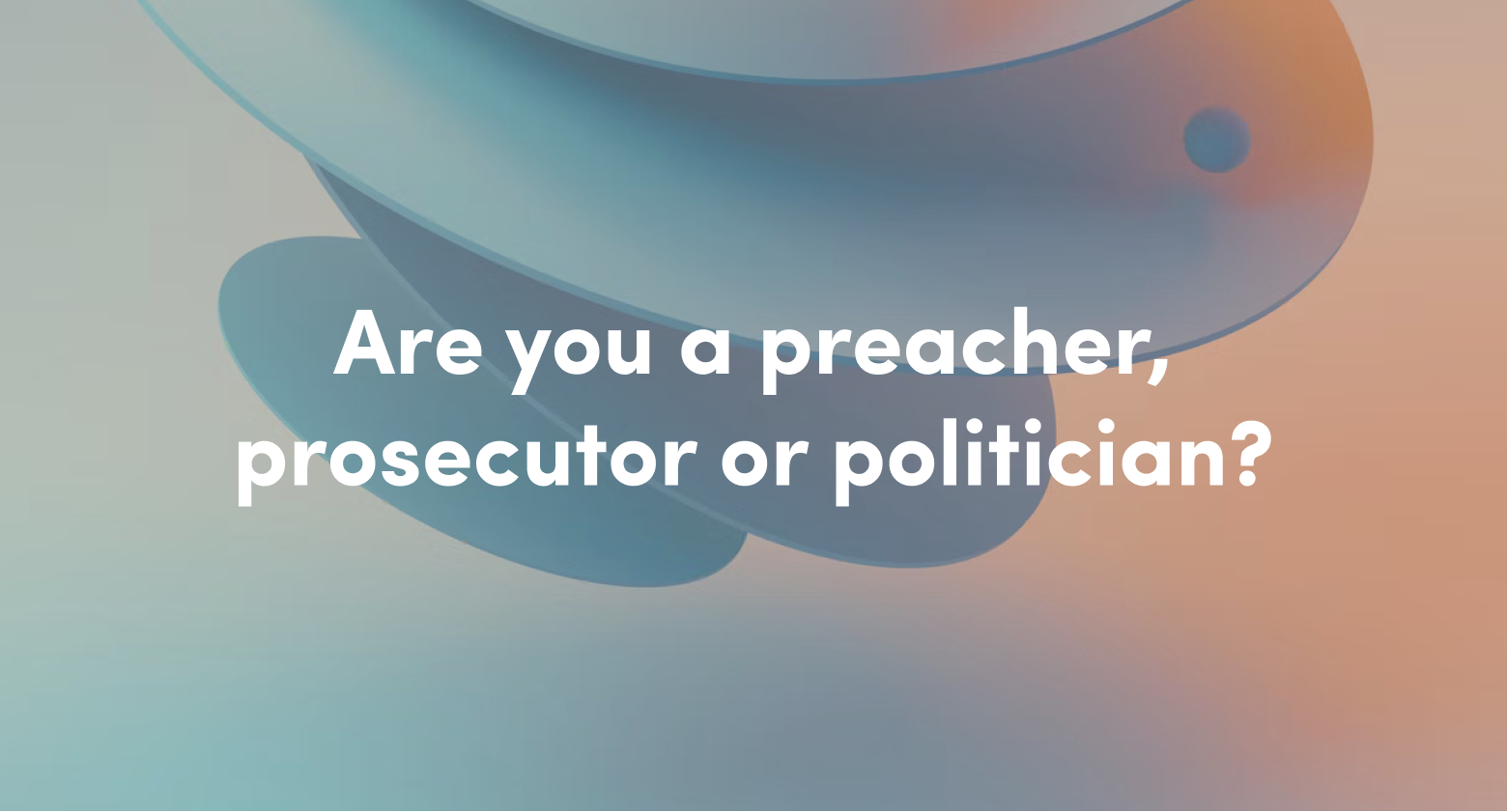 Why can it be so hard to see our own blind spots? Why do we sometimes miss things that are glaringly obvious to others? The answer may lie in three mental modes: the preacher, prosecutor, and politician.